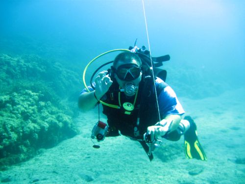 Potápění je na Chalkidiki zcela volné,majitel a lidé na bázi Porto Karras ochotní a, i když jsme se s nimi nepotápěli nám ukázali lokality, kde to stojí za to. Ale ono to stojí za to všude. Křišťálové moře plné života,přítulných chobotniček,zvědavých ryb, mlčenlivých mušlí a nežahavých přátelských medůz,krásné, čisté, poloopuštěné pláže se stinnými borovicemi