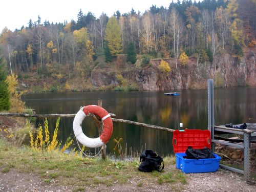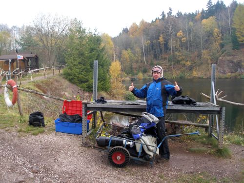 Dalsi ze serie podzimnich ponoru na nasi oblibene lokalite... Jaromir drandi na skutru, ja cistim hlavu a relaxuji v pohodlnem trimu, jen Patrik taha certa za vocas … ptate se jak? Teplota vody uz trvale zustava pod desetistupnovou hranici unosnosti, presto se Patrik vrha do 8°C vody chranen skolnim 5 mm overalem, aby tam stravil dobrych 50 minut. Ven se drape bez tresu v kolenou a drkotani zubu, coz vyzaduje nejvyssi stupen chrabrosti. Ve slabsi chvilce vsak priznava, ze to jiz bylo “na hrane”. Jaromir nezistne nabizi svuj osvedceny 9 mm neopren, ktery tak dobre hral v Norsku. Jeste jsme neoschli a rysuje se dalsi testovaci akce…